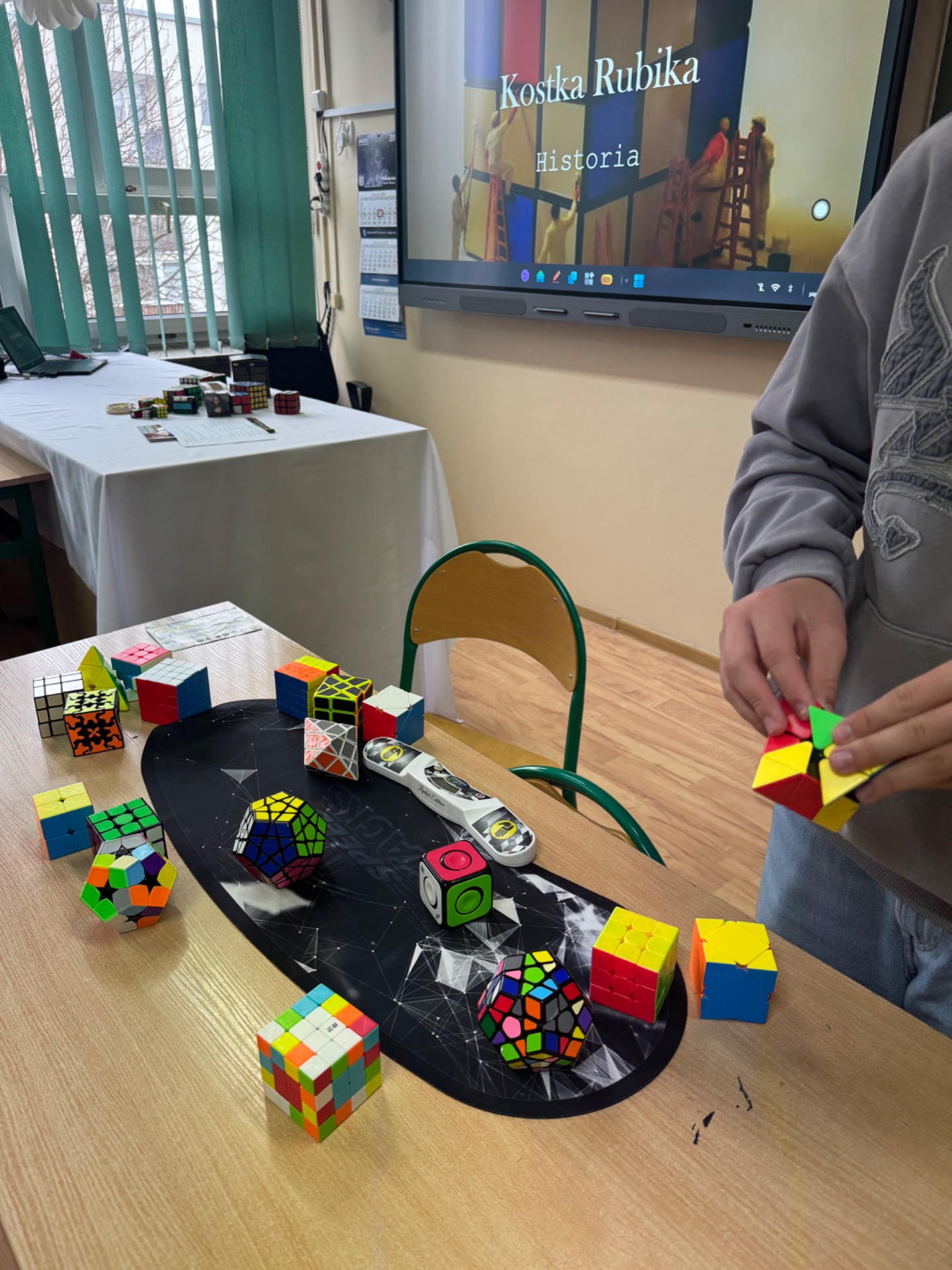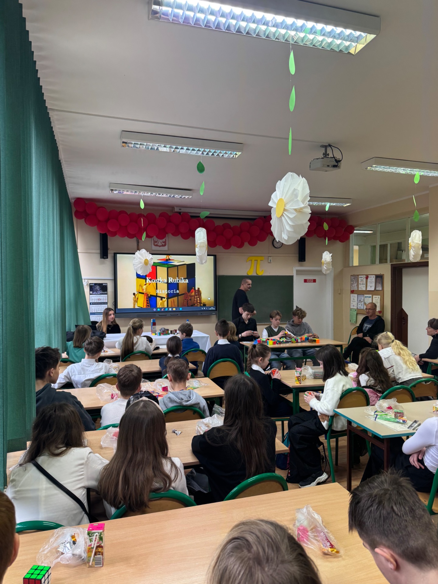 14 marca 2025 roku Ania Lachendrowicz wraz z Zuzią Guzdek wzięły udział w X edycji konkursu „Dzień Liczby Pi” organizowanego przez SP nr 5 w Wadowicach. Zadaniem dziewczyn było zapamiętanie jak największej ilości cyfr rozwinięcia dziesiętnego liczby Pi. Spisały się świetnie! Po konkursie mogliśmy wysłuchać wykładu Zbigniewa Zborowskiego, człowieka, który o kostce Rubika wie chyba wszystko. Mieliśmy okazję posłuchać o historii kostki Rubika oraz zobaczyć na żywo układnie kostki w niewiarygodnie szybkim tempie.