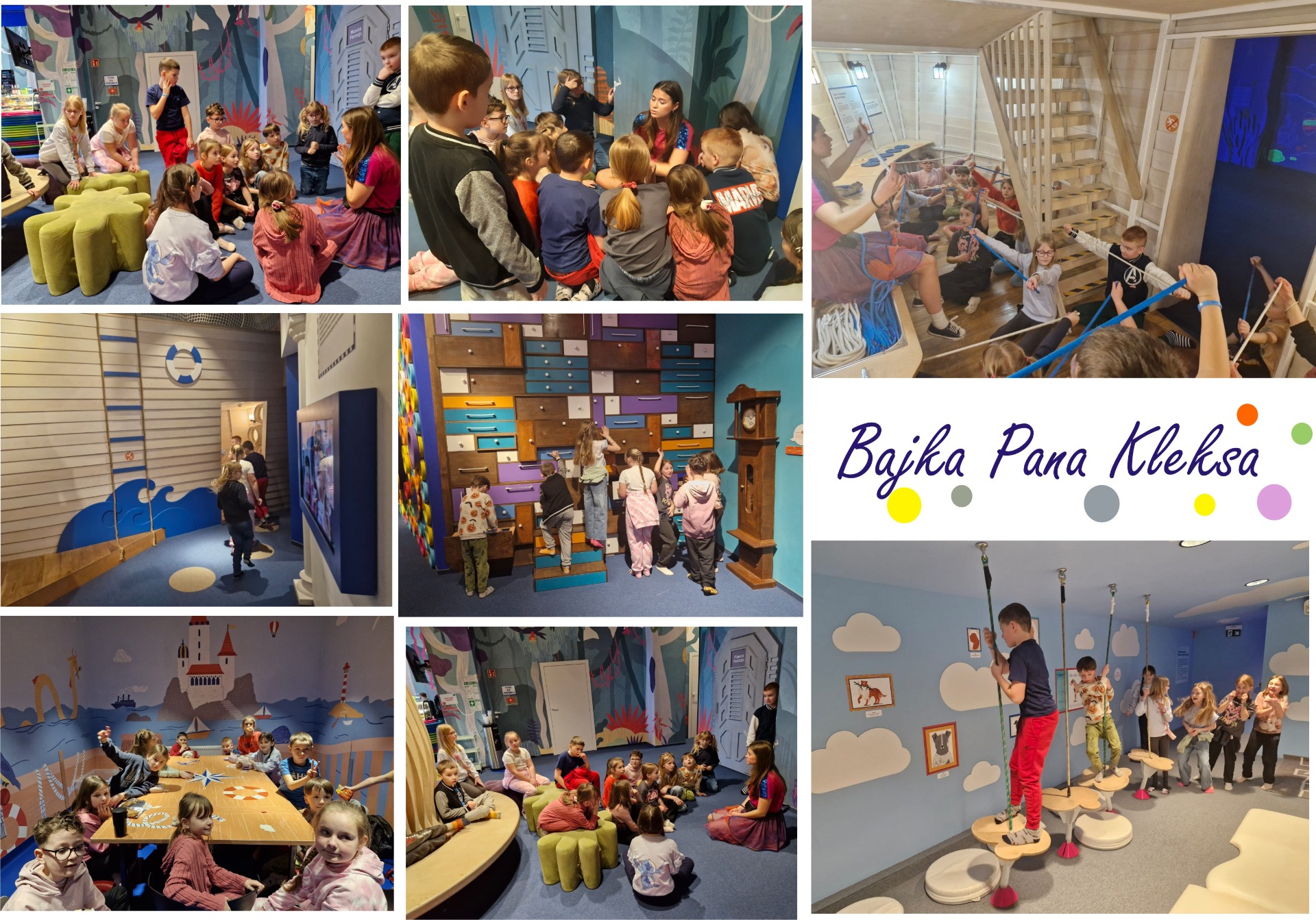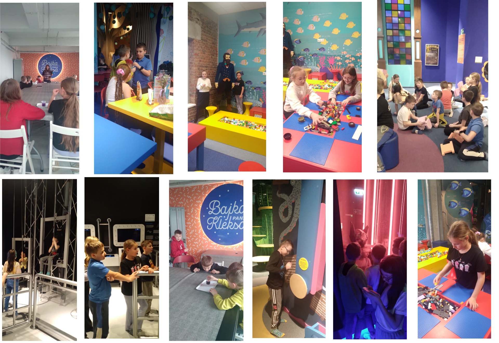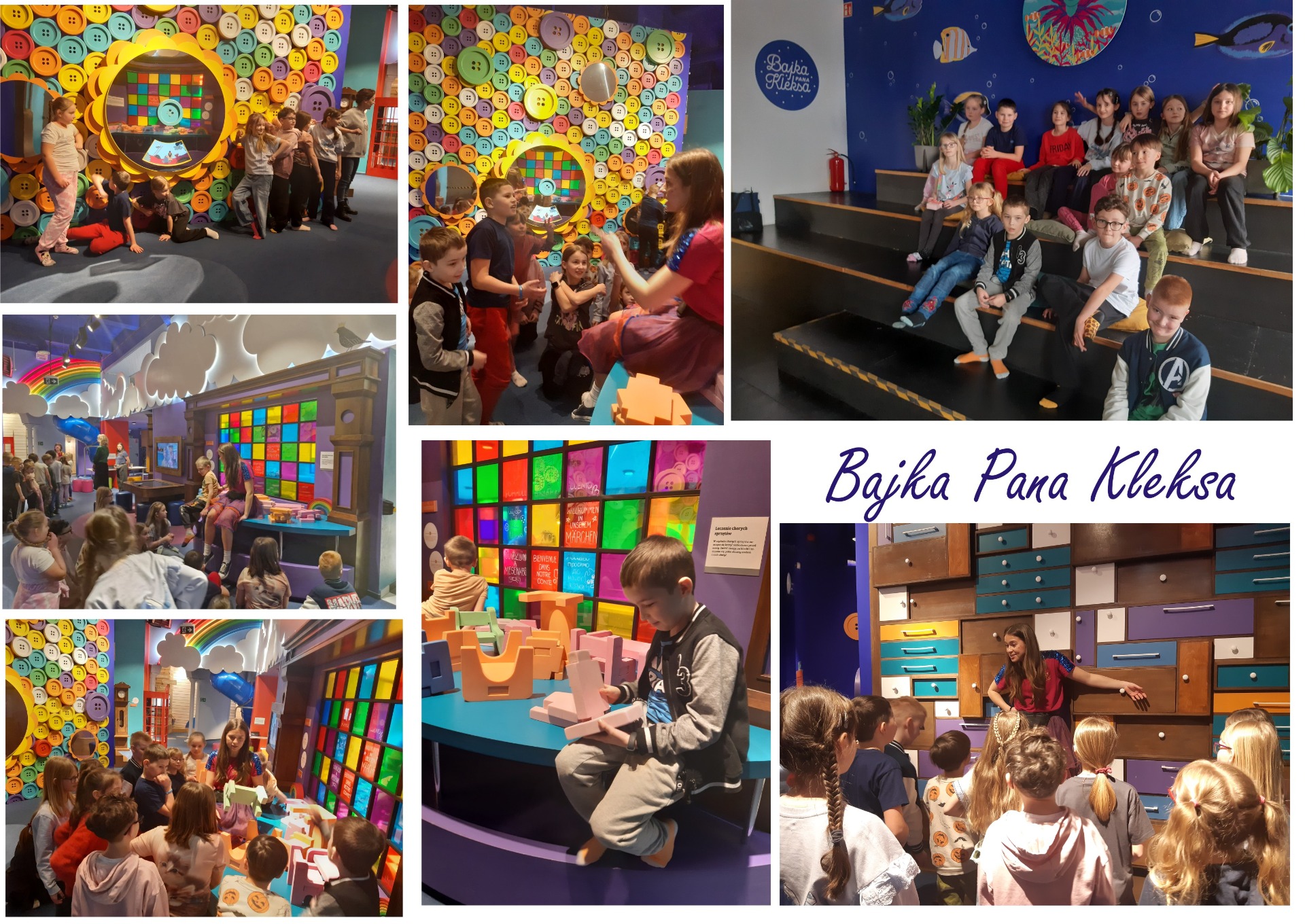 Klasy 2 i 3 odwiedziły Bajkę Pana Kleksa w Katowicach. Na kilka godzin przenieśliśmy się w bajkowy świat Ambrożego Kleksa. Śladami literackich bohaterów książki odkrywaliśmy niezwykłe przygody, tajemnice, sekrety i zagadki. Poznaliśmy Krainę Szpaka Mateusza, Ostatni Rezerwat Przyrody, Planetę Fantazji a na końcu pomagaliśmy królowej Abie ocalić podwodny świat przed katastrofą ekologiczną. Zdążyliśmy wziąć udział w naukowych warsztatach, wspólnie potańczyć do piosenek z Akademii Pana Kleksa, pośpiewać, losować sny na sennych lusterkach i uczyć się wiązania prostych węzłów.