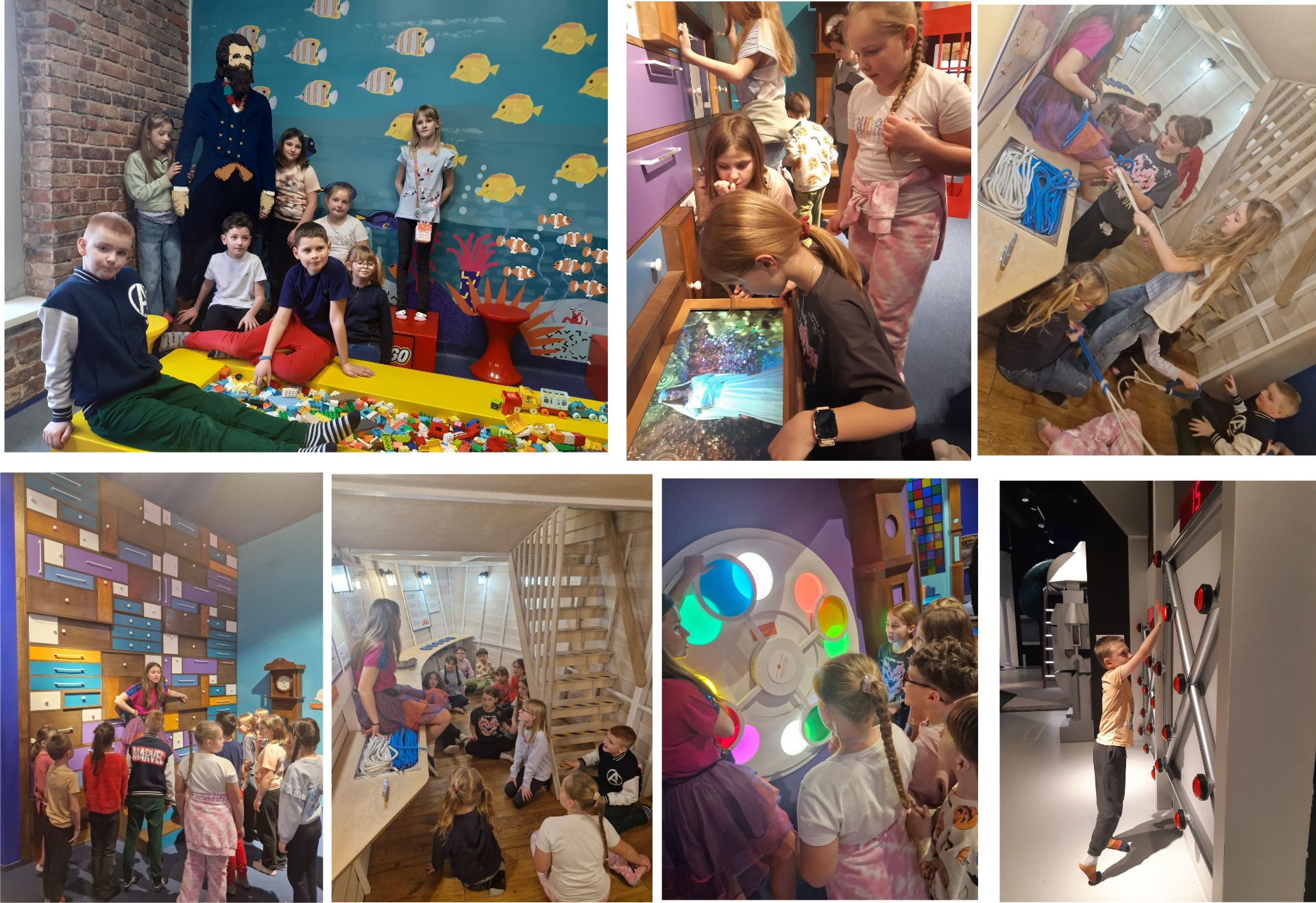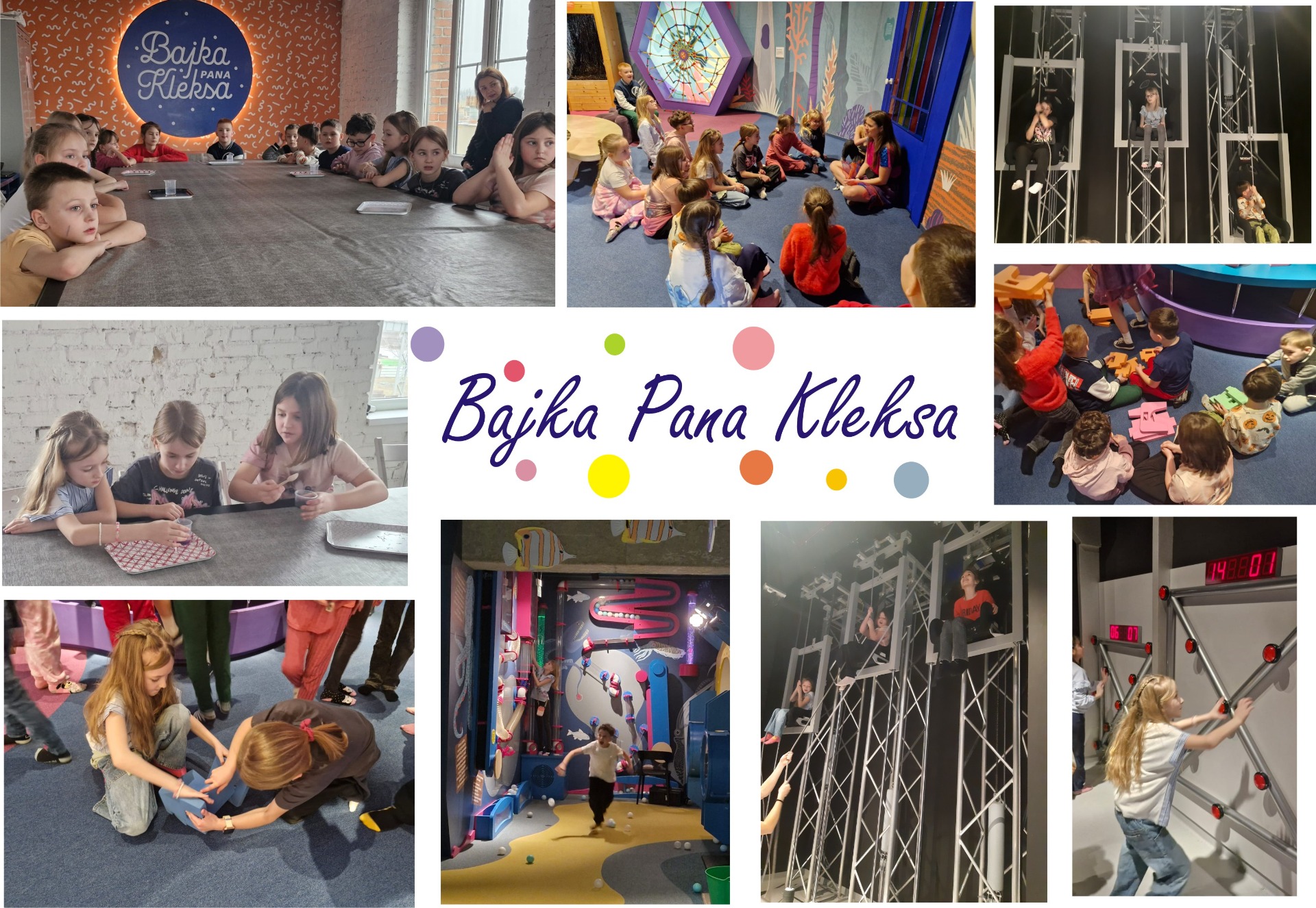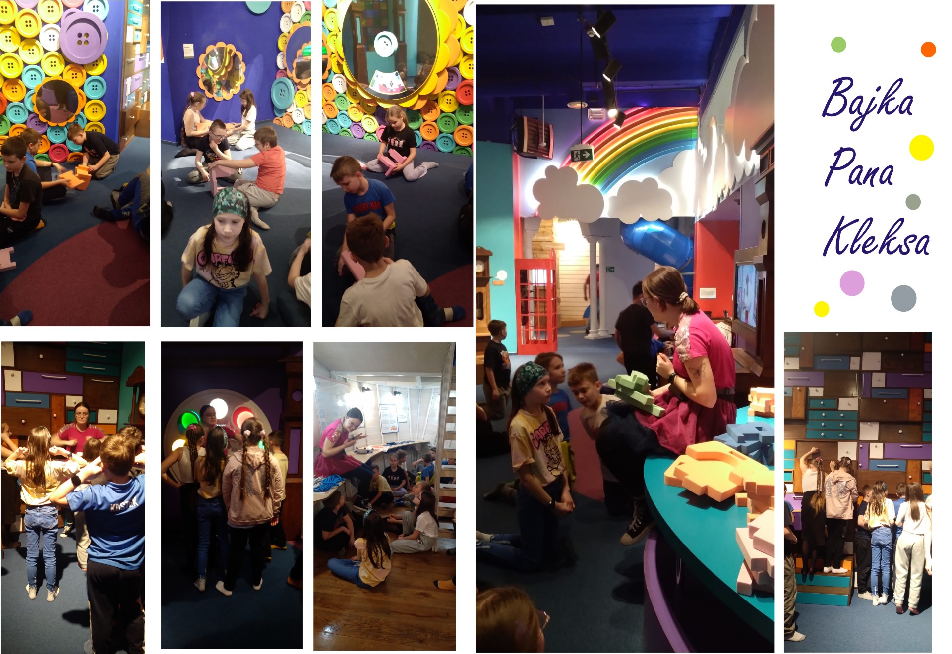 Klasy 2 i 3 odwiedziły Bajkę Pana Kleksa w Katowicach. Na kilka godzin przenieśliśmy się w bajkowy świat Ambrożego Kleksa. Śladami literackich bohaterów książki odkrywaliśmy niezwykłe przygody, tajemnice, sekrety i zagadki. Poznaliśmy Krainę Szpaka Mateusza, Ostatni Rezerwat Przyrody, Planetę Fantazji a na końcu pomagaliśmy królowej Abie ocalić podwodny świat przed katastrofą ekologiczną. Zdążyliśmy wziąć udział w naukowych warsztatach, wspólnie potańczyć do piosenek z Akademii Pana Kleksa, pośpiewać, losować sny na sennych lusterkach i uczyć się wiązania prostych węzłów.