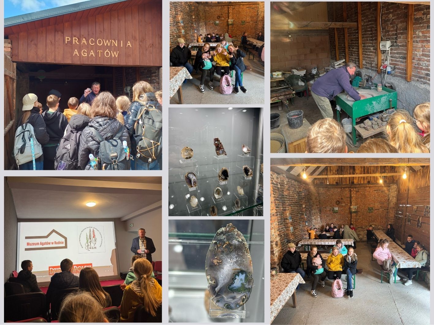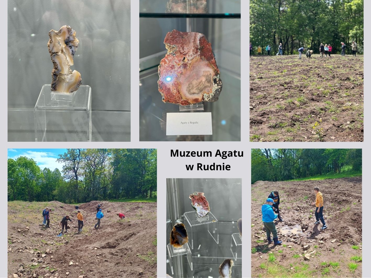 Uczniowie klasy IV wczoraj mieli okazję na przejażdżkę drezyną w Lokalna Kolej Drezynowa w Regulicach. Wymagało to trochę wysiłku, ale wszyscy dali radę. Następnym celem wycieczki było Muzeum Agatów w Rudnie. Tam uczniowie dowiedzieli się wielu ciekawostek związanych z powstaniem, wydobywaniem i obróbką tych minerałów. Największą atrakcją było poszukiwanie agatów na polu agatowym. Zbiory były bardzo owocne.