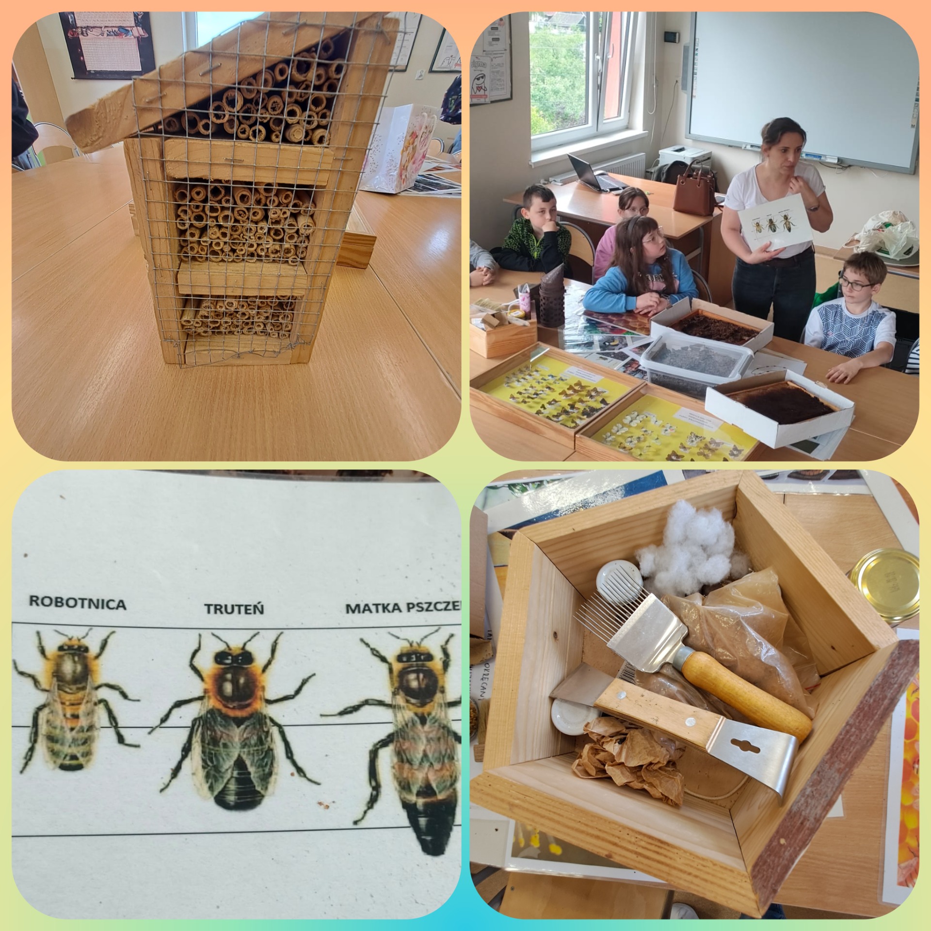 Uczniowie poznali funkcjonowanie modelu pszczelej rodziny. Mieli okazję spróbować pszczelich produktów i założyć okulary kalejdoskopowe, aby zobaczyć świat oczami pszczoły. Dowiedzieli się na czym polega praca pszczelarza i czym jest bartnictwo.