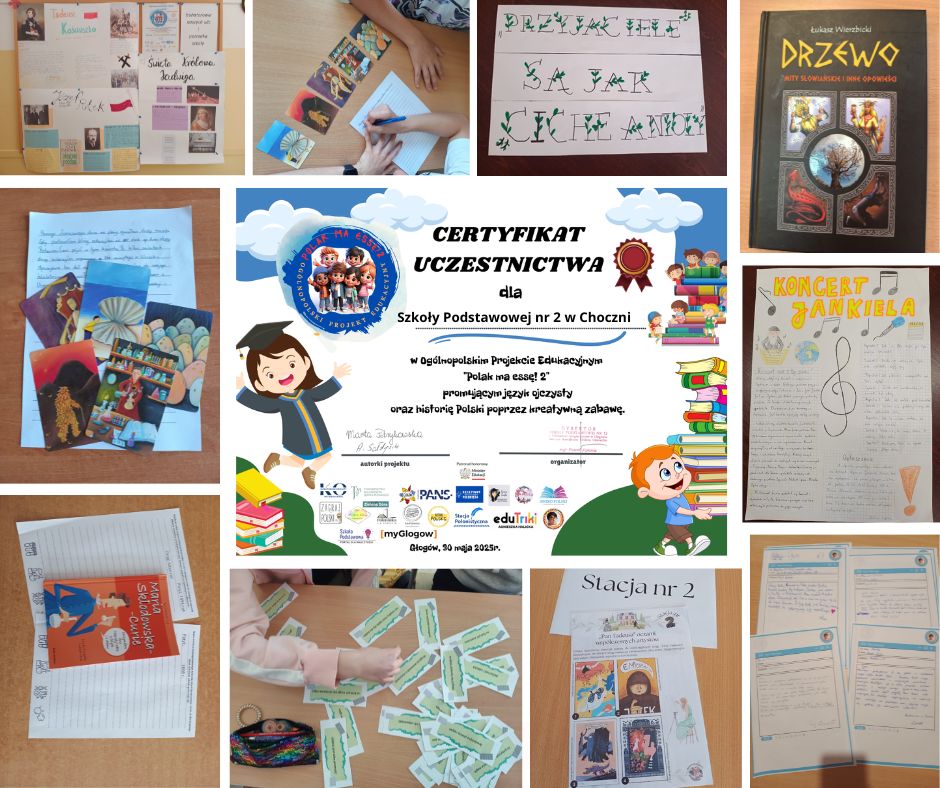 Ogólnopolski Projekt Edukacyjny "Polak ma essę! 2" dobiegł końca. Uczniowie klas IV-VIII wykonali różnorodne plakaty i ulotki związane z lekturami, tworzyli wiersze, pisali ciekawe opowiadania, e-maile, a nawet kaligrafowali cytaty. Projekt udowadnia, że można się wiele nauczyć poprzez zabawę i pracę w grupach. Czekamy na kolejną edycję w przyszłym roku szkolnym.