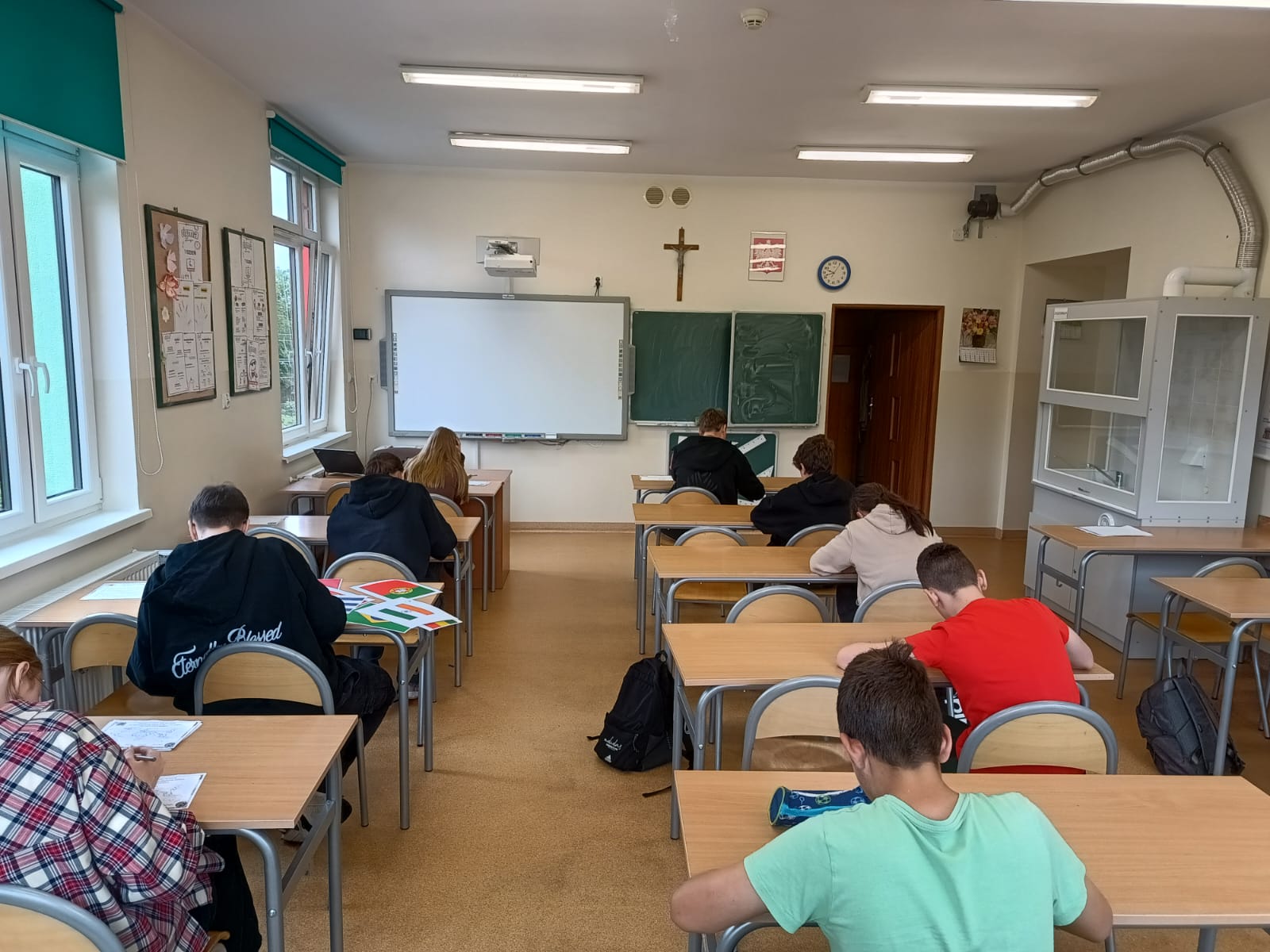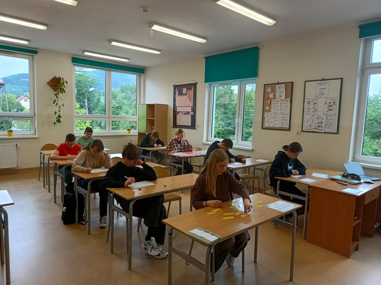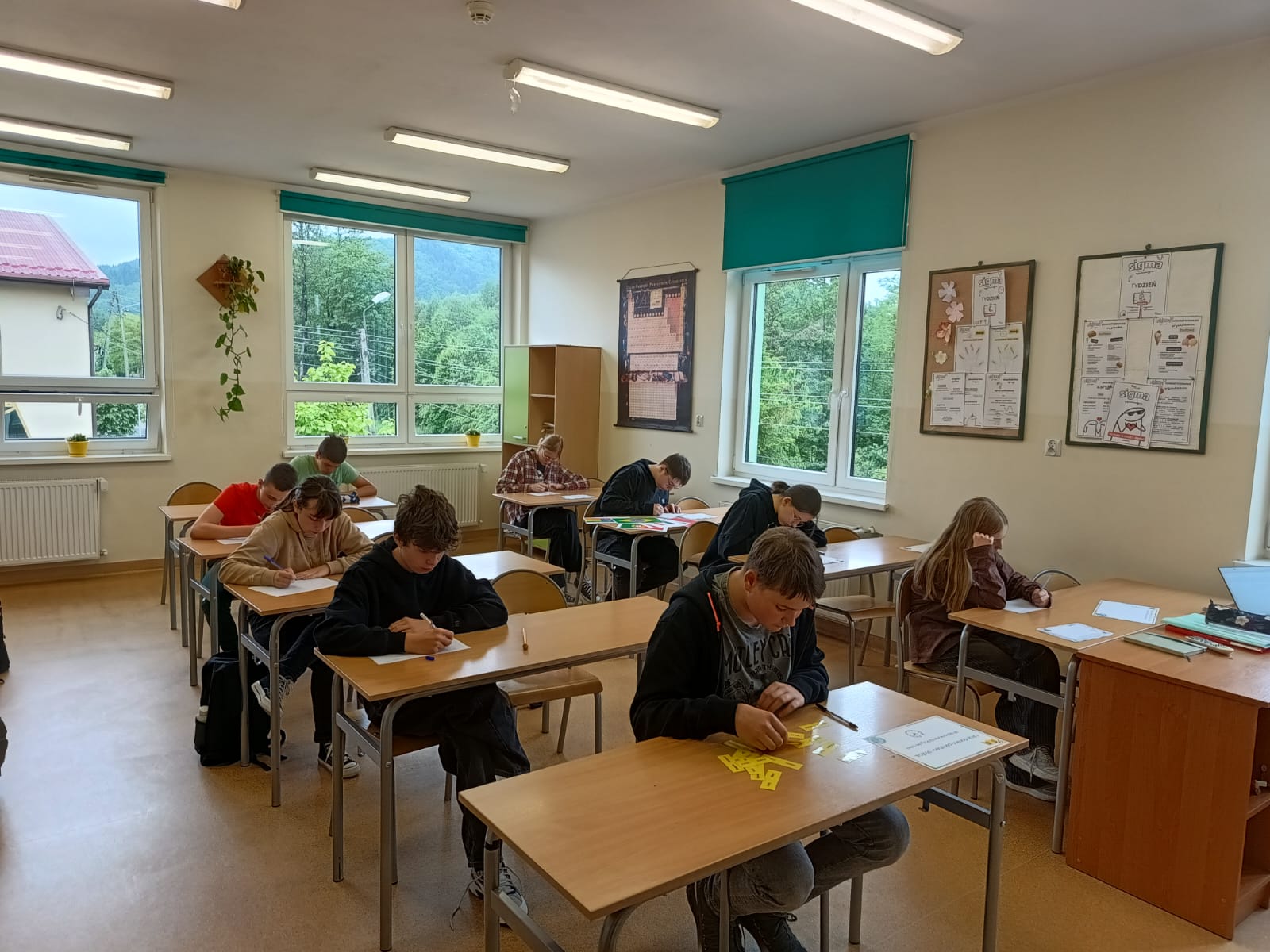 Te i inne geograficzne zagadki rozwiązywali uczestnicy Turnieju Państw Świata, który odbył się w maju w naszej szkole. W Turnieju wzięło udział 11 uczniów klas starszych. Zmierzyli się z pytaniami dotyczącymi państw świata w formie tradycyjnej - testu, a także warsztatowej, podczas której przechodzili kolejno przez pięć stanowisk z zadaniami, w których liczył się również uciekający szybko czas. Nasi ochotnicy dzielnie mijali kolejne stanowiska. I choć w skupieniu rozwiązywali zawiłe zagadki, nie tracili dobrego humoru ![]()