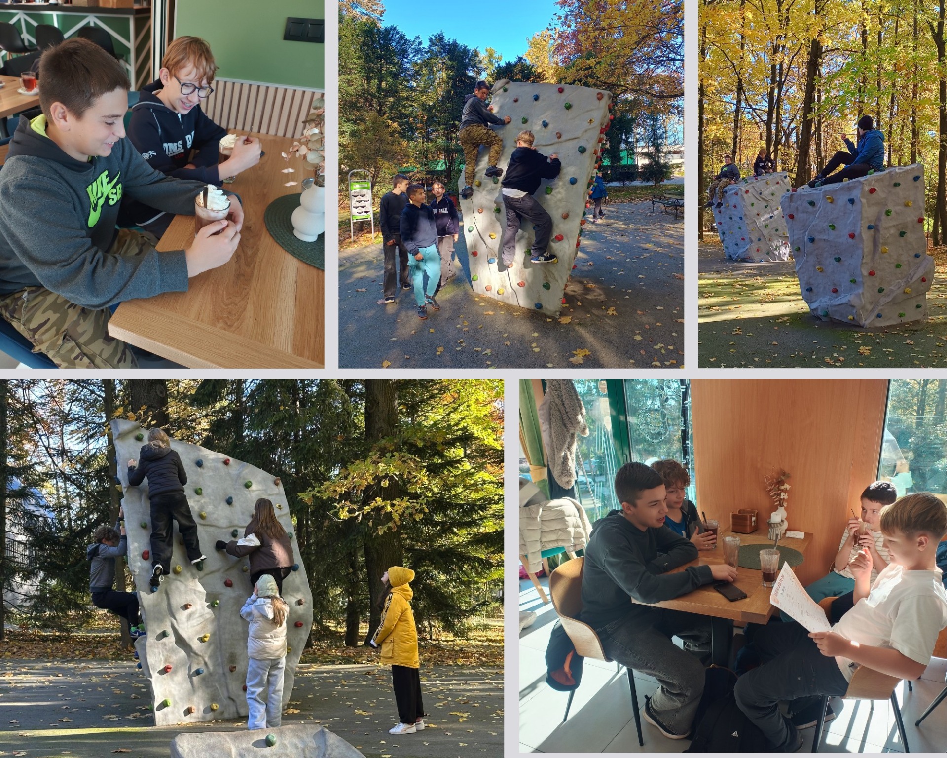 To był dzień pełen wrażeń. Uczniowie klasy 6 pieszo pokonali trasę spod szkoły do Parku Miejskiego w Wadowicach. To była dla nich jedynie rozgrzewka. Później korzystali z atrakcji parku, np. ćwicząc formę na sciankach. Na końcu przyszedł czas na łyk gorącej czekolady i spacer pod tężnię solankową. Już odliczamy dni do kolejnej wycieczki.