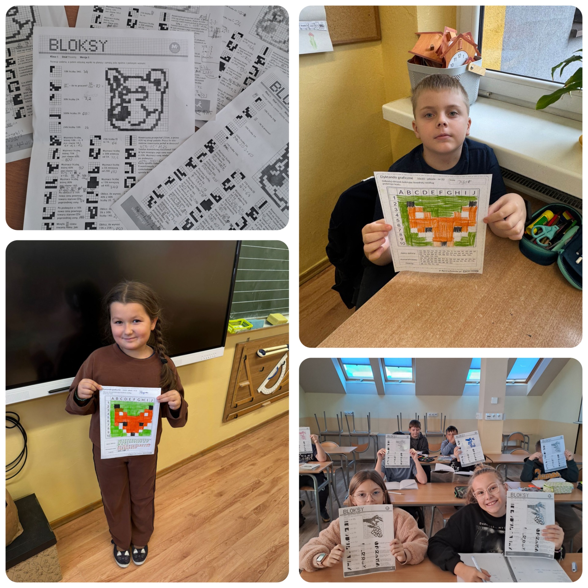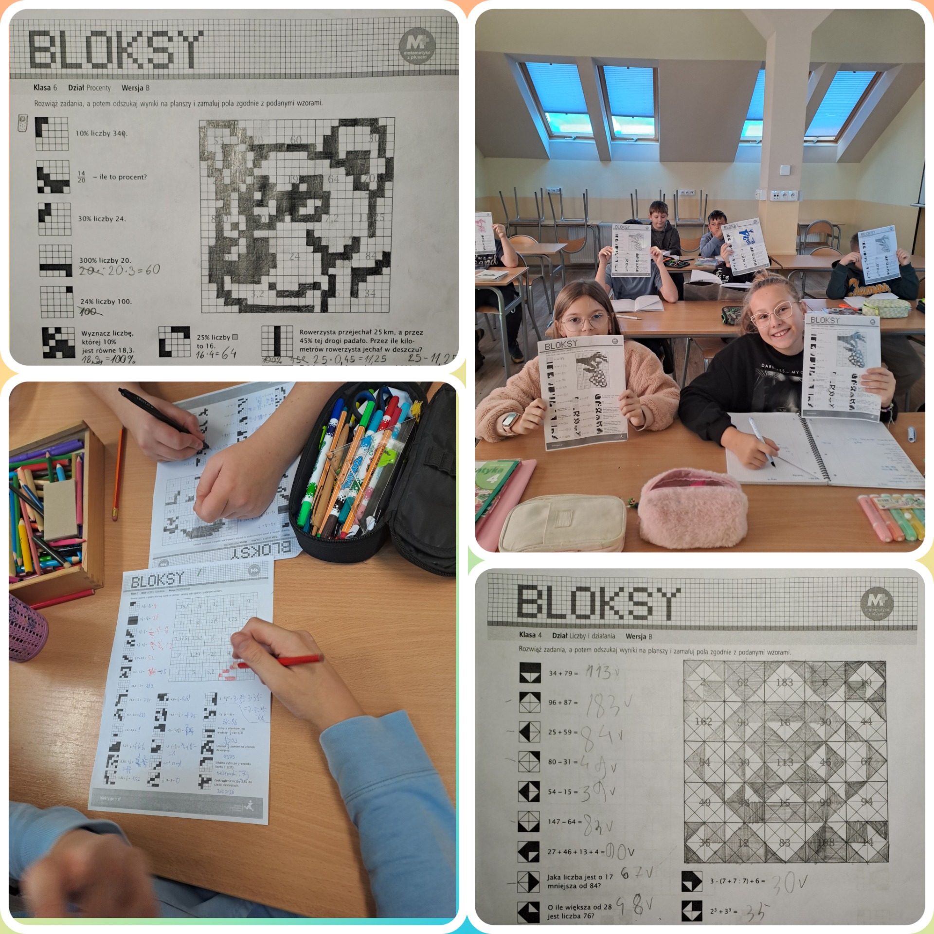 Najmłodsi poznawali dopiero tajniki kodowania i świetnie się bawili poszukując ukrytych obrazów i wyrazów. Starsze klasy ćwiczyły sprawność rachunkową, wykonując obliczenia na liczbach naturalnych, ułamkach zwykłych i dziesiętnych. Siódmoklasiści rozwiązywali problemy procentowe.