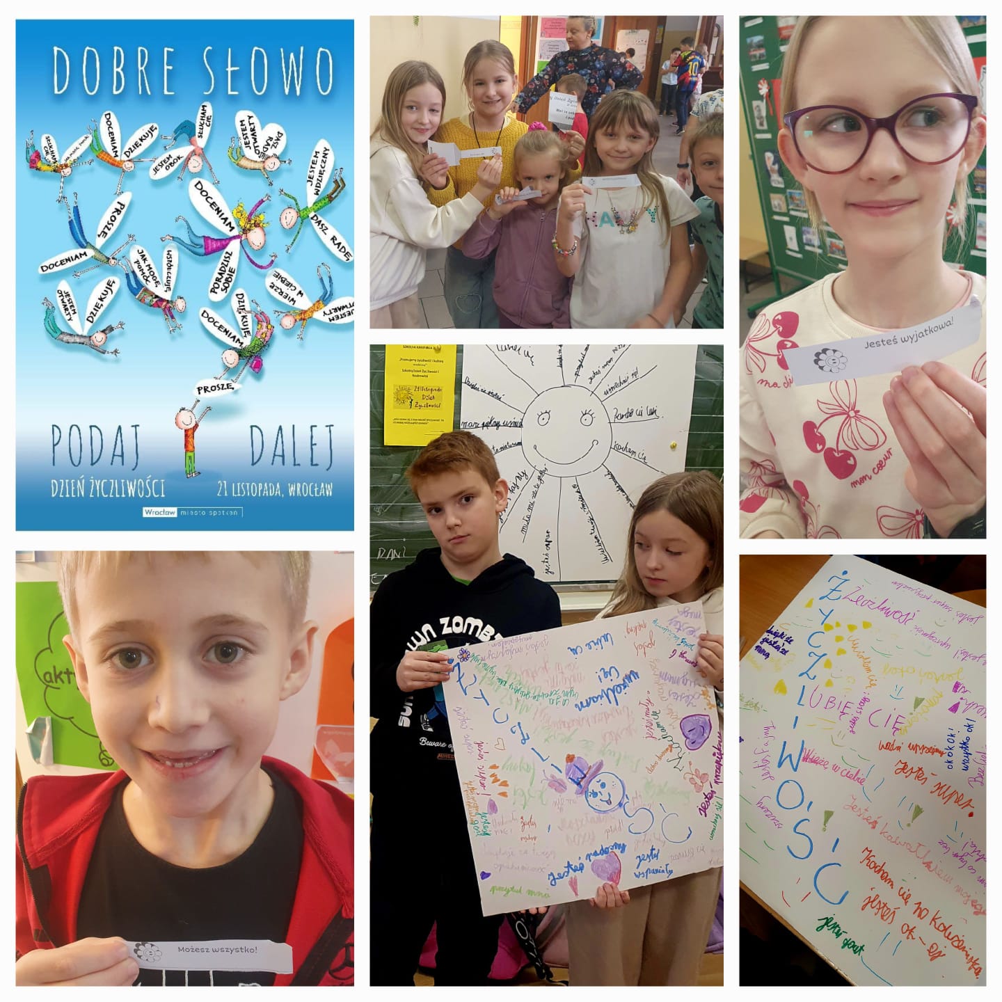 21 listopada przypada Światowy Dzień Życzliwości. Ten dzień klasa III rozpoczęła od przeczytania książki P.Wechterowicza "Proszę mnie przytulić". Za sprawą bohaterów dowiedzieliśmy się, jak ważne są proste gesty płynące z serca. Były rozmowy o życzliwości, wykonywanie dla losowo wybranego kolegi "pudełeczka mocy" z dobrym słowem oraz warsztaty z panią pedagog "Dobre słowo - podaj dalej".