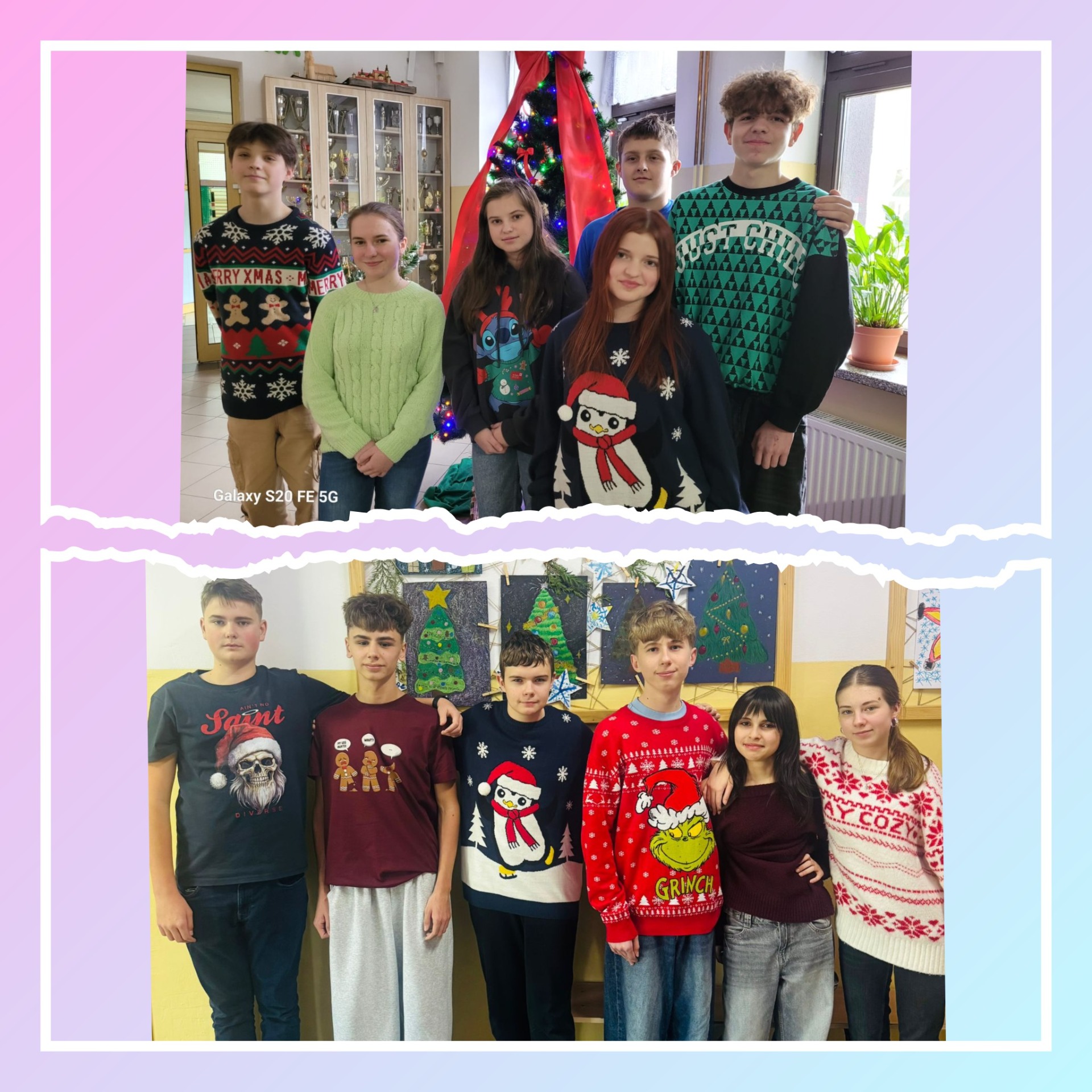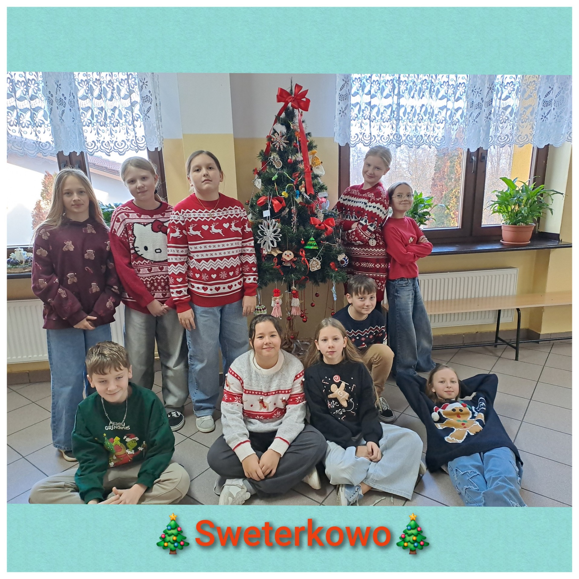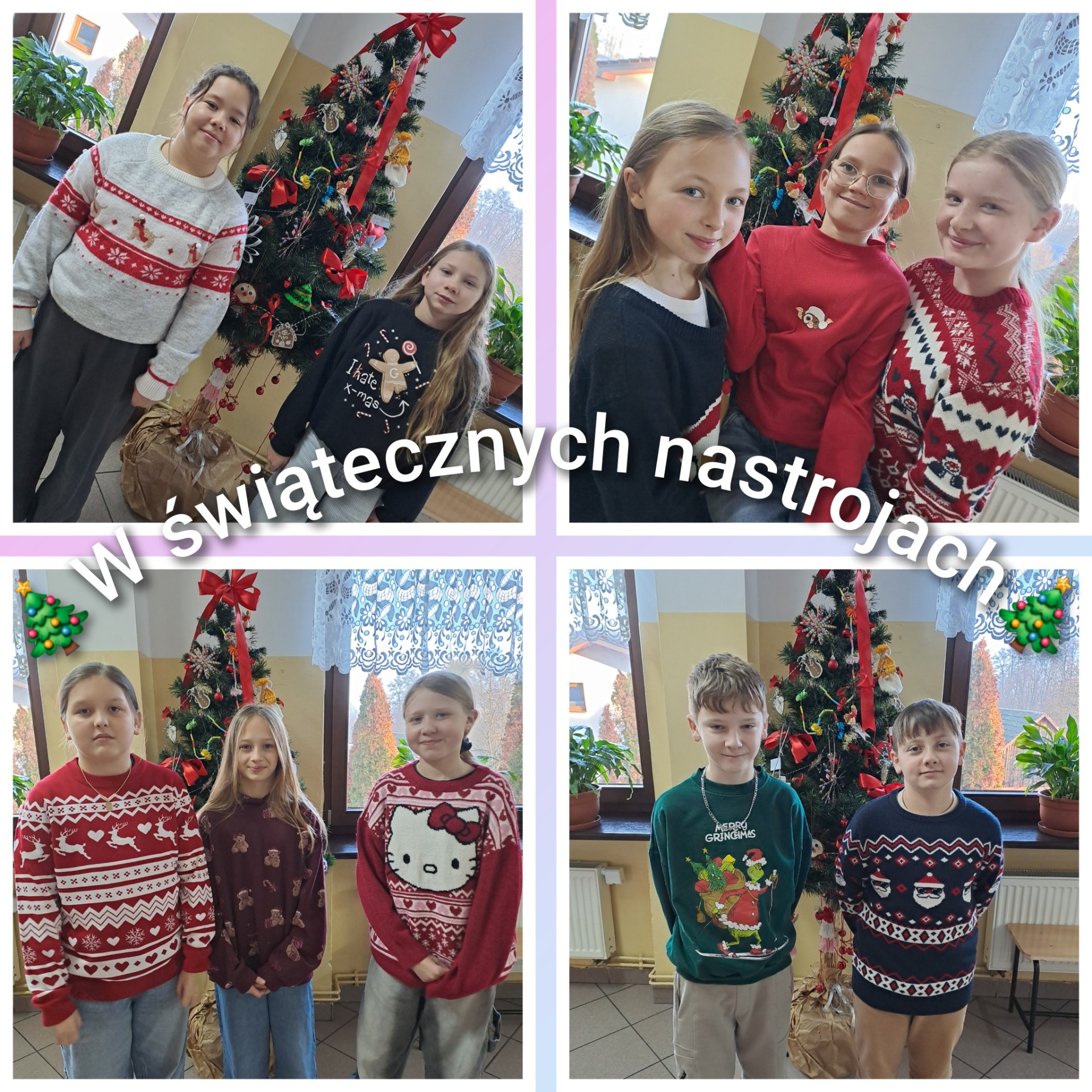 18 grudnia w szkole obchodziliśmy DZIEŃ ŚWIĄTECZNEGO SWETERKA. Było kolorowo, świątecznie i w zimowej atmosferze. Korytarze wypełniły się zabawnymi i barwnymi sweterkami z motywem świątecznym. Dziękujemy wszystkim za włączenie się do wspólnej zabawy!!!