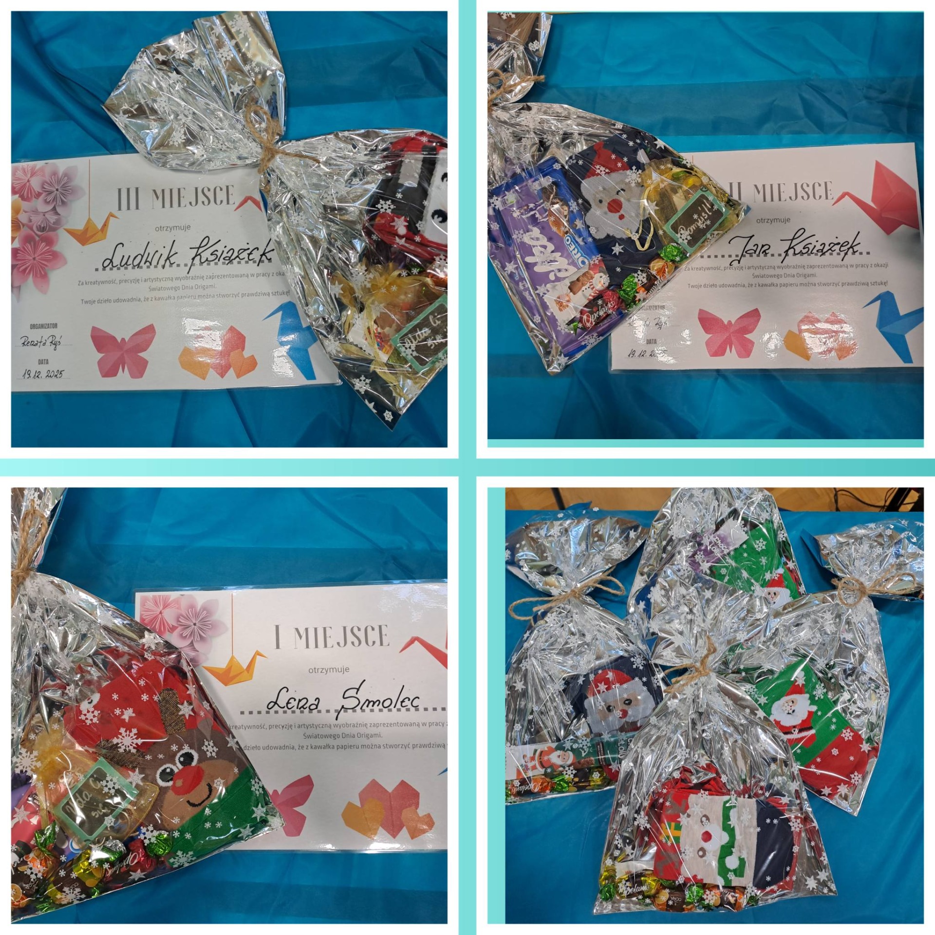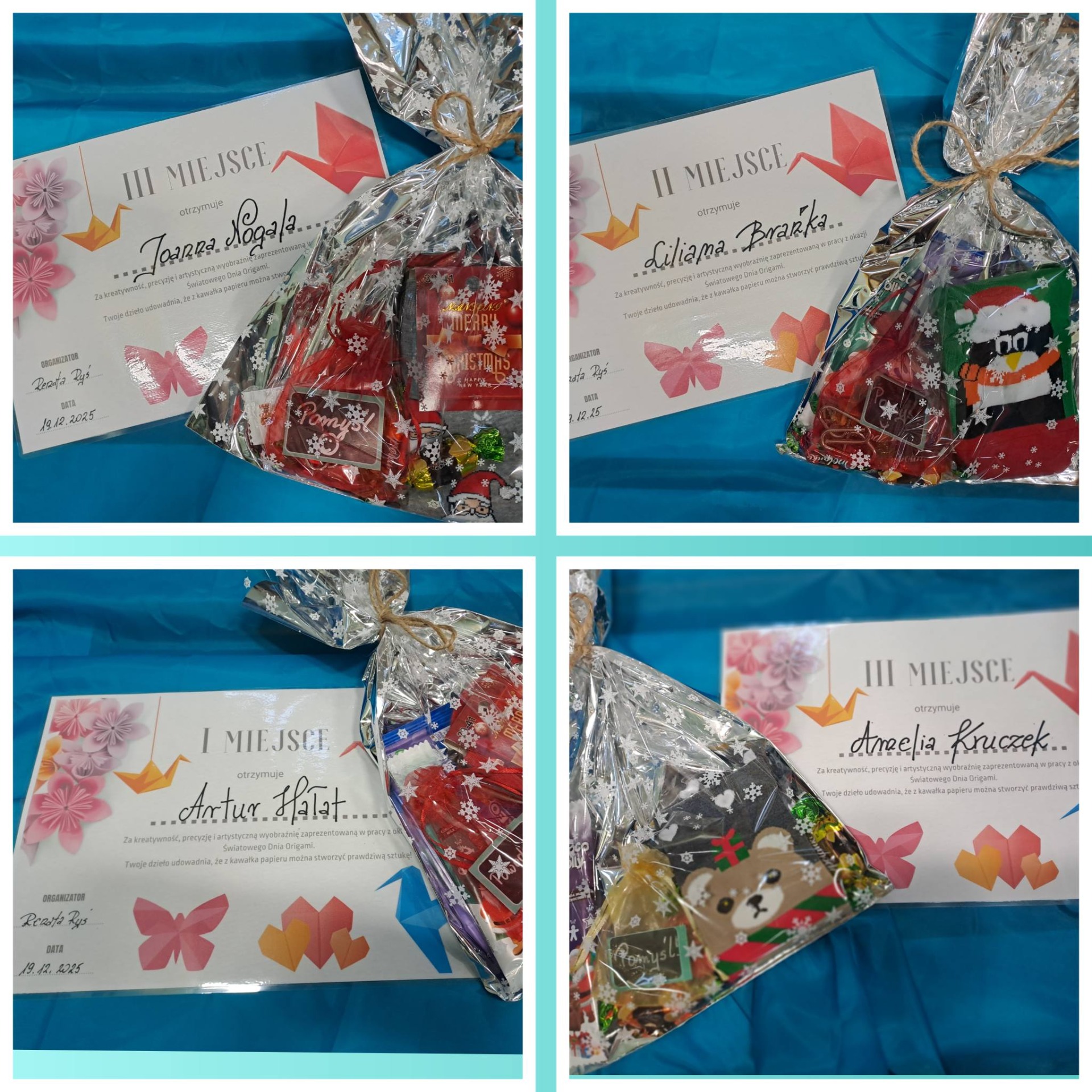 19 grudnia podczas apelu wręczono nagrody uczniom, którzy wykonali prace origami. Nagrody przyznano w dwóch kategoriach: