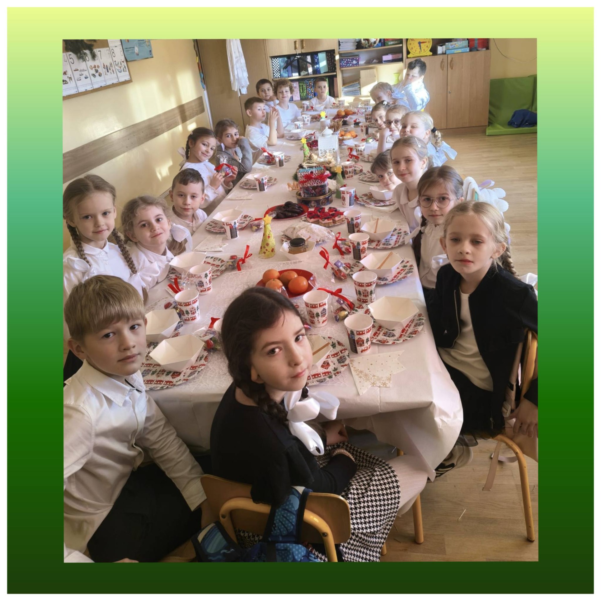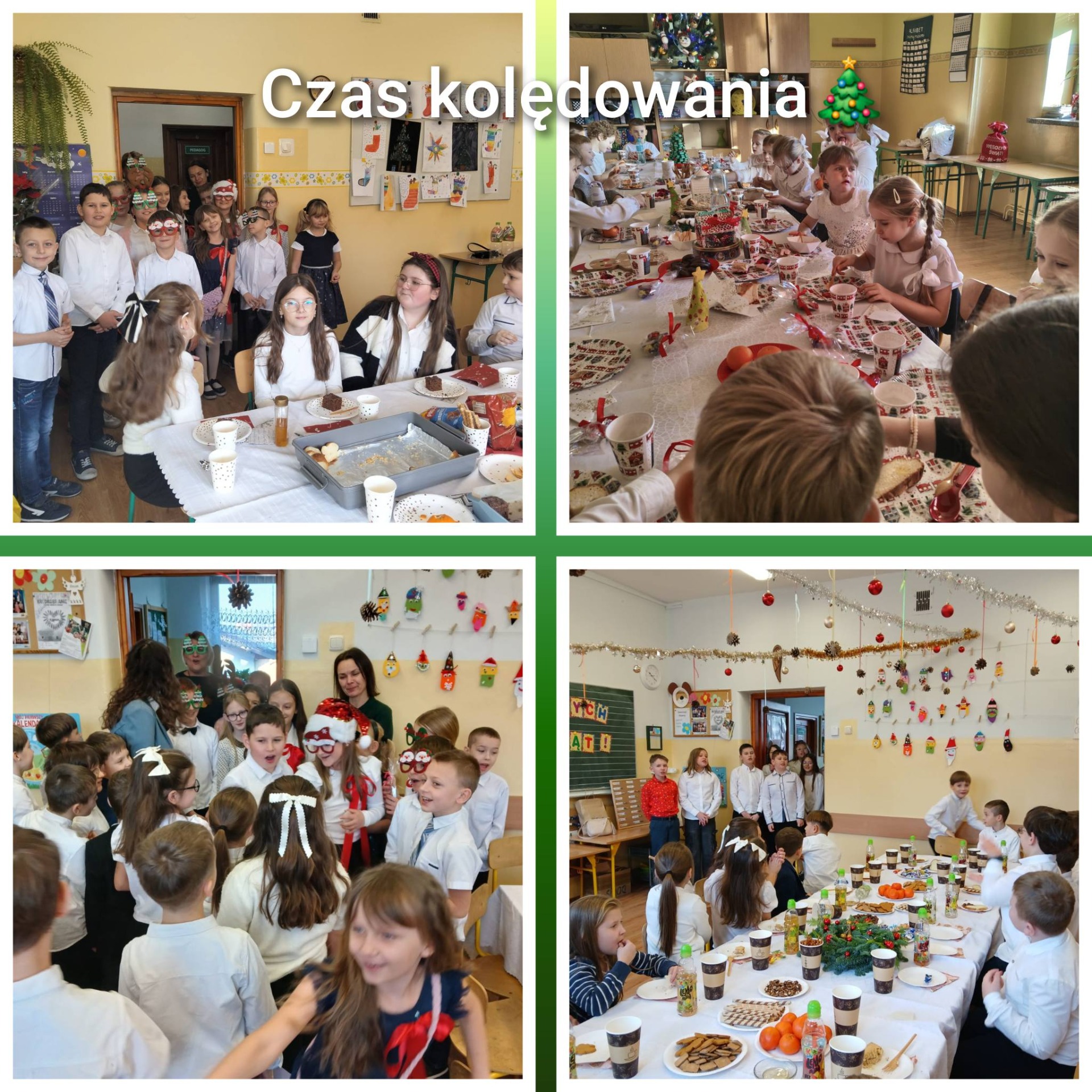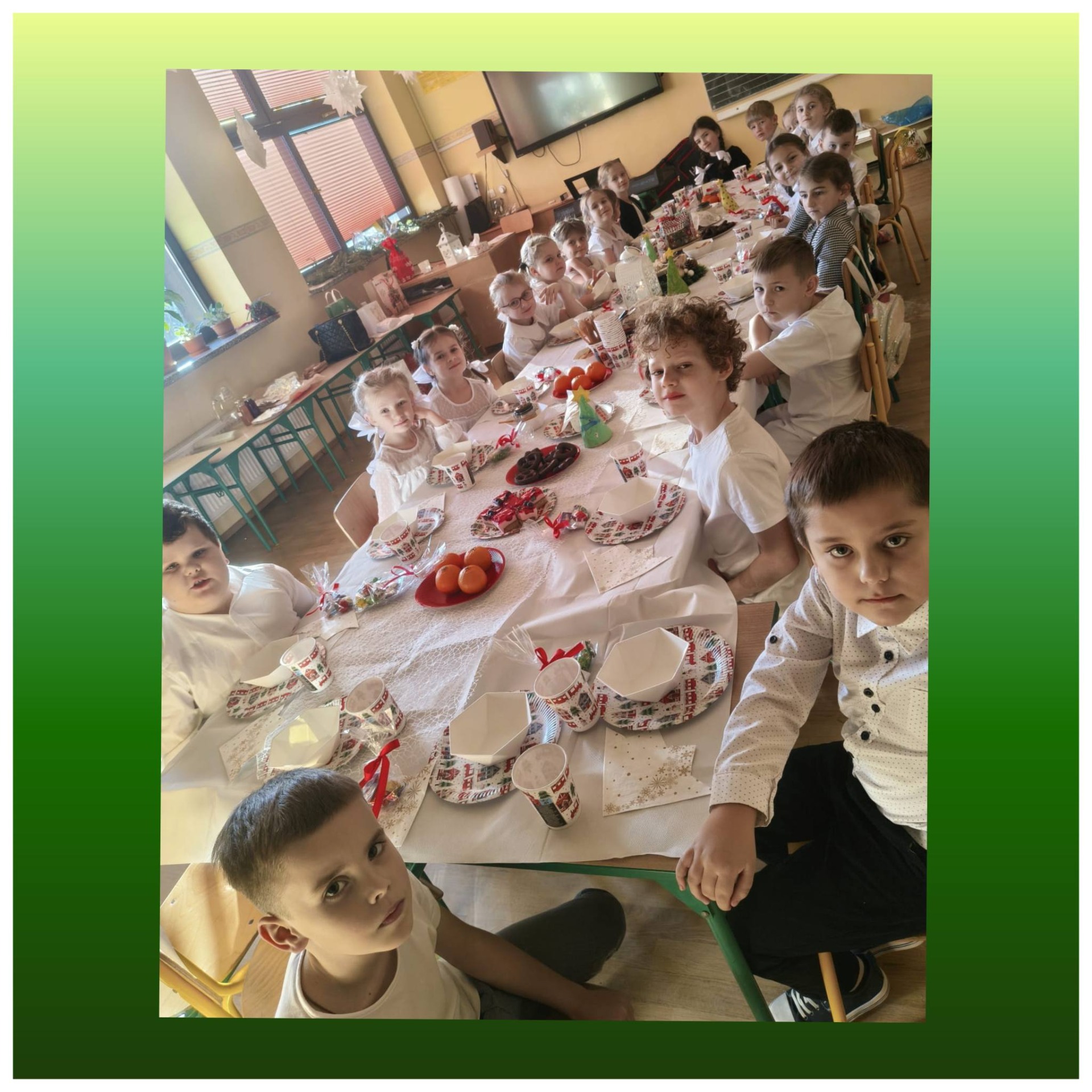 W piątek 19 grudnia, po apelu świątecznym, wszystkie klasy udały się na świąteczne klasowe spotkania. Zadbaliśmy o to, by tego dnia nikt nie został sam. Zaprosiliśmy do swoich klas panią pedagog oraz panią bibliotekarkę. Spotkanie przy wspólnym stole to niezwykły czas rozmów, uśmiechów, życzliwości, przebaczania, kolędowania. Tego dnia życzyliśmy sobie wszelkiego dobra!